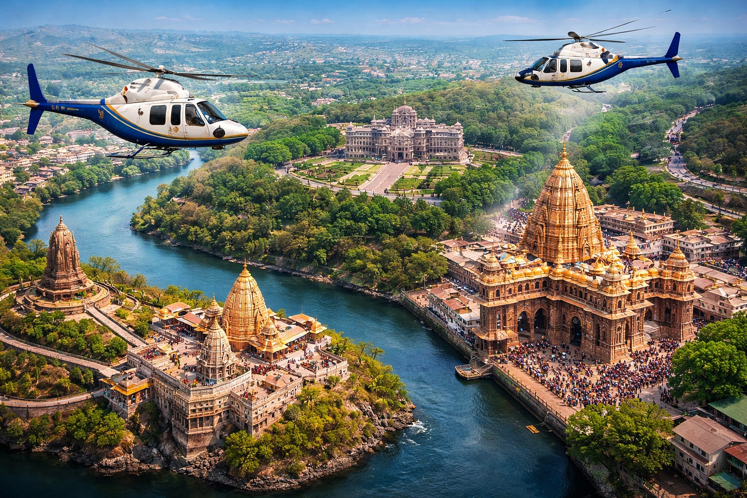 Covering two of India’s most powerful Jyotirlingas—Shree Mahakaleshwar (Ujjain) and Shree Omkareshwar (Omkareshwar)—these helicopter tours allow yatris to experience divine blessings without exhausting road travel.