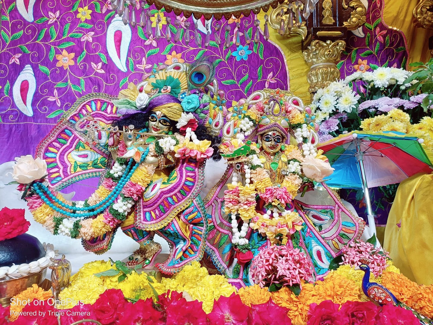 Sri Sri Radha Krishna: The central deities representing the eternal love of Radha and Krishna.