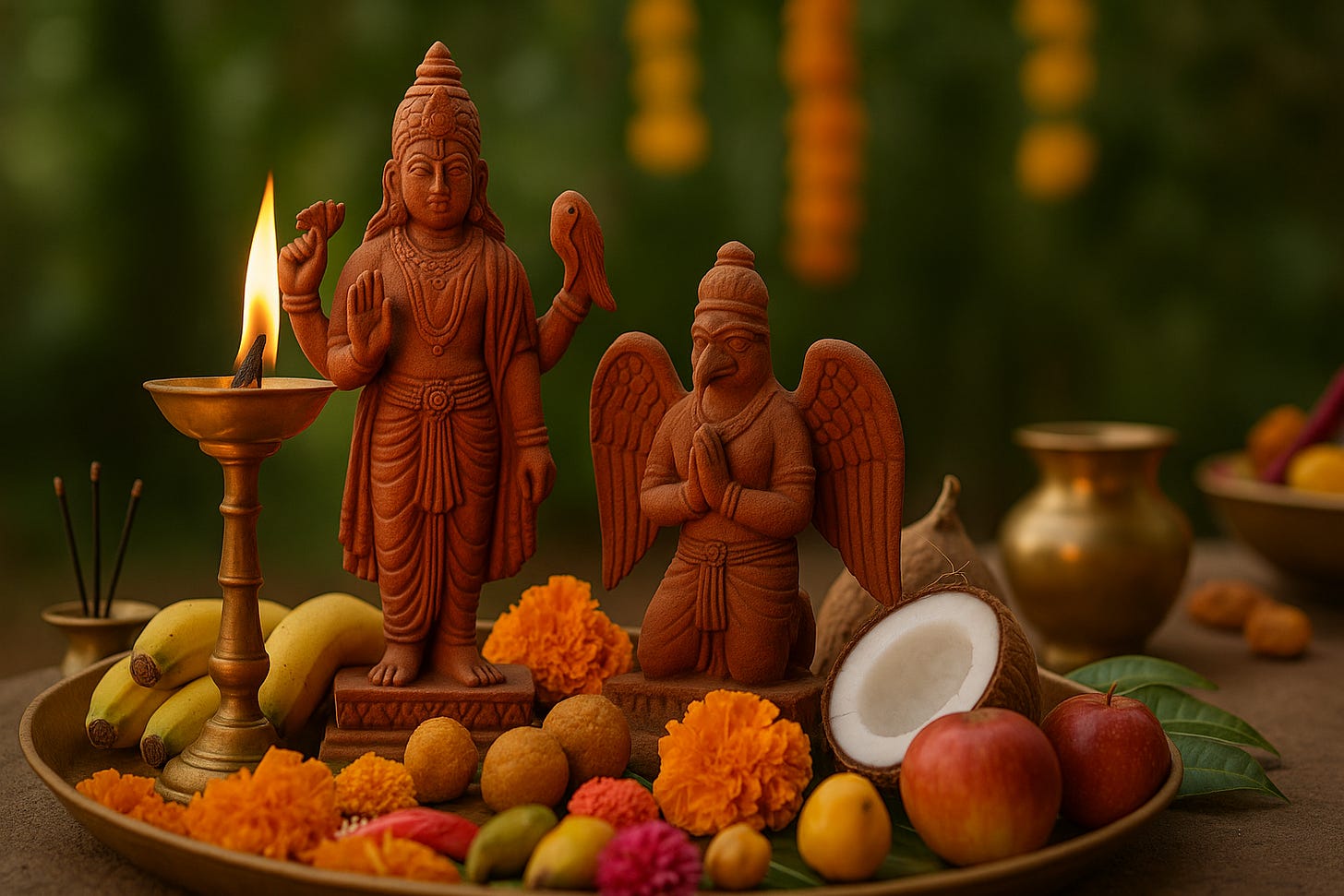 Place an image or idol of King Jimutavahana on the altar. Some traditions also include symbolic figures of Garuda or jackals.