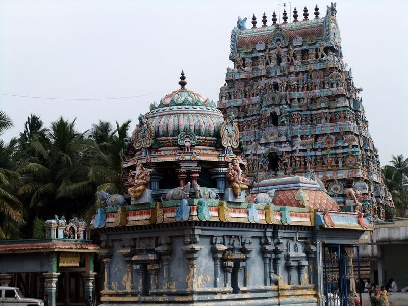This ancient Chola-period shrine is known as Rahu Sthalam and forms part of the Navagraha temple circuit. Here, Lord Shiva is worshipped as Naganathar, and Goddess Parvati as Piraisoodi Amman.