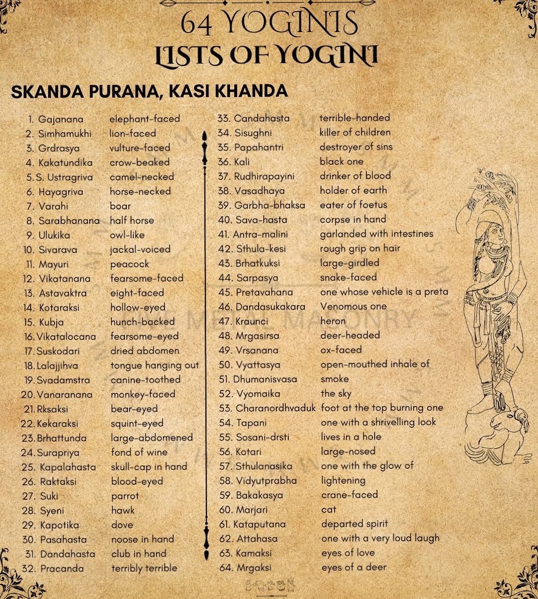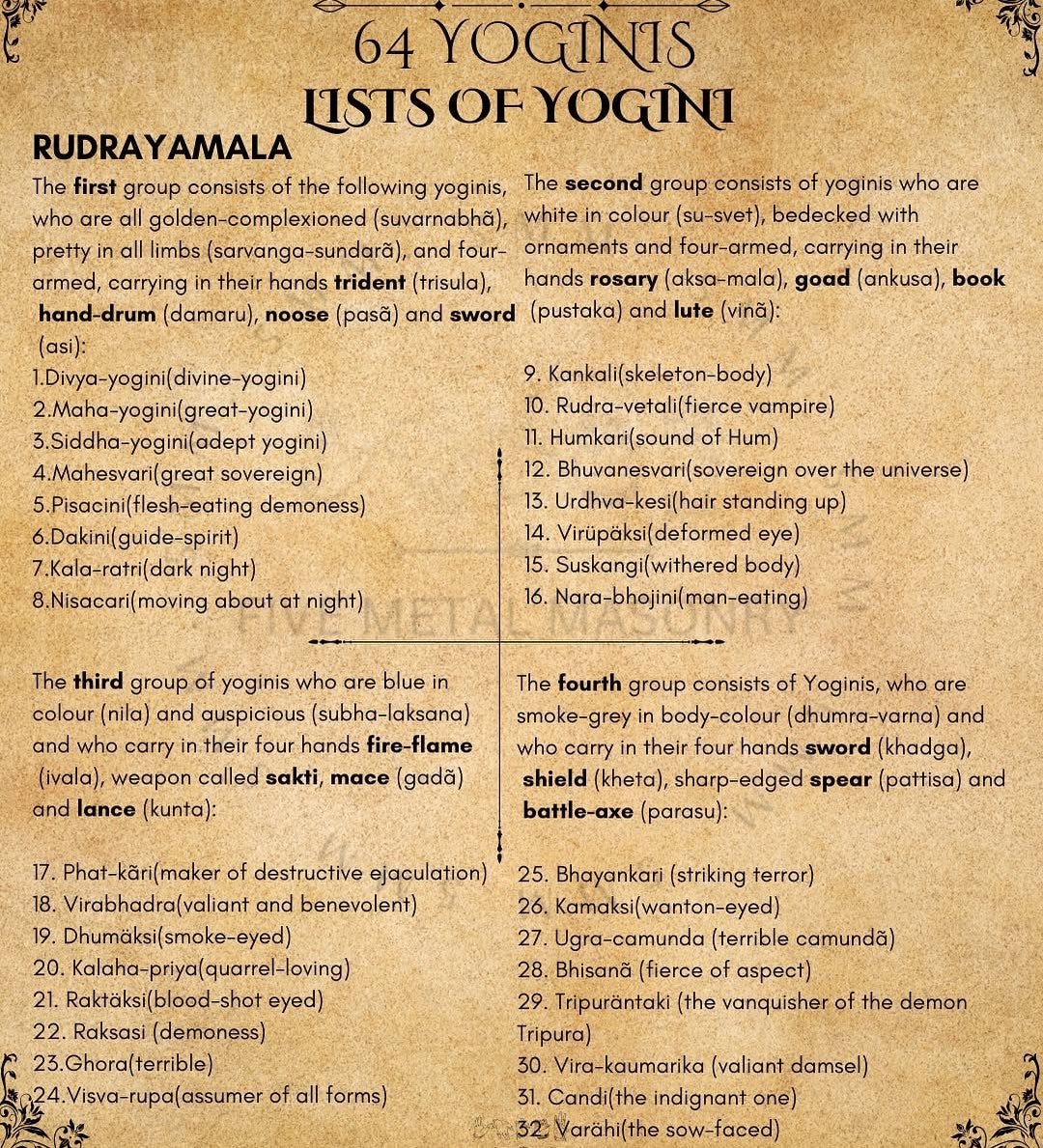 ✅ Full list: 64 Yoginīs with vivid animalistic, cosmic, and fierce identities