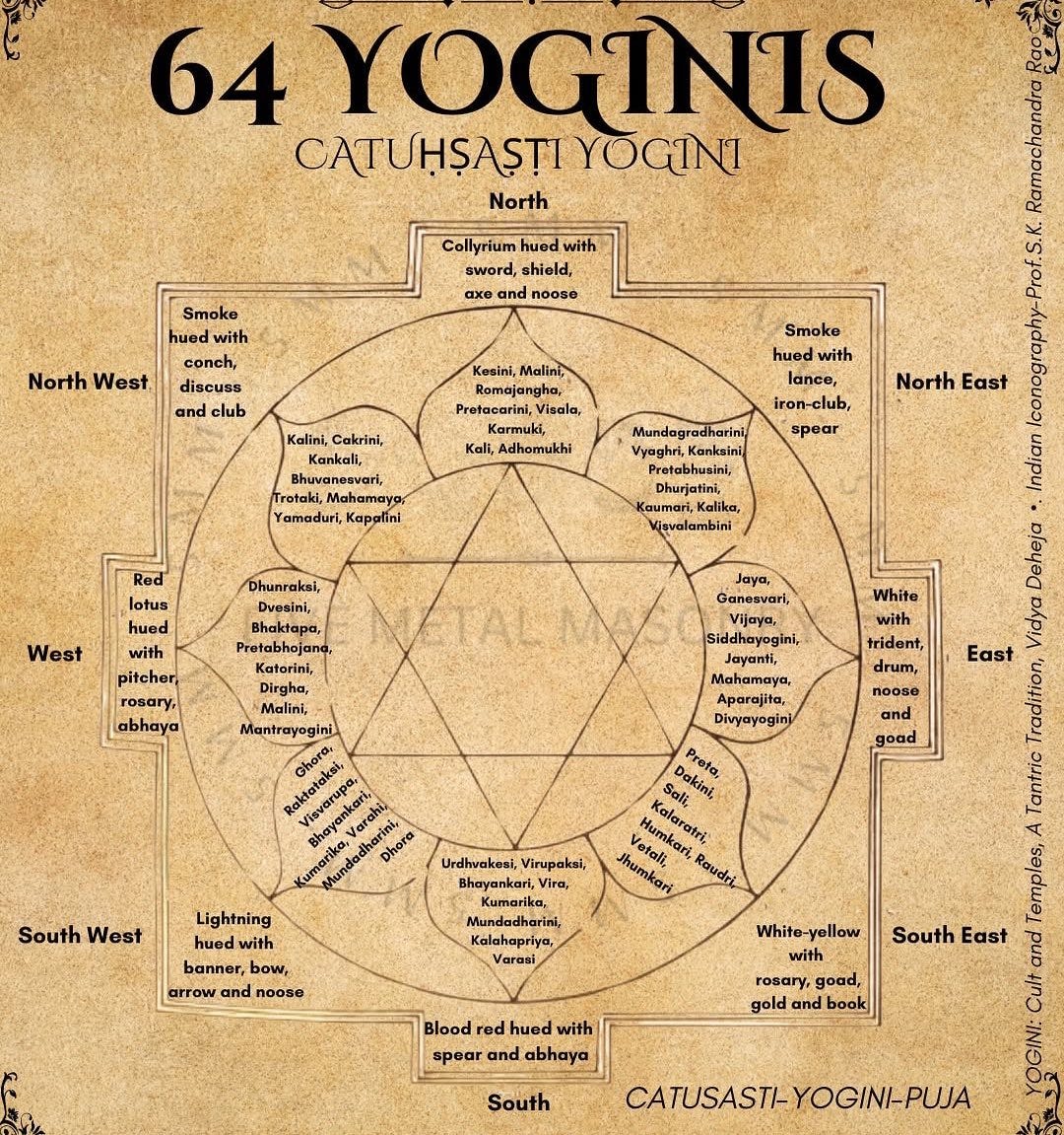 One of the most recognizable visualizations of the 64 Yoginīs is the eight-directional mandala, where Yoginīs are arranged according to: