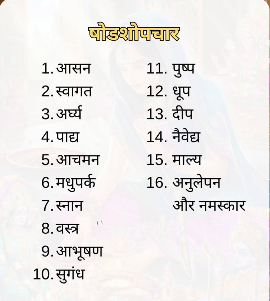 рд╖реЛрдбрд╢реЛрдкрдЪрд╛рд░ (Shodashopachar) тАУ 16 рдЙрдкрдЪрд╛рд░ (Offerings)