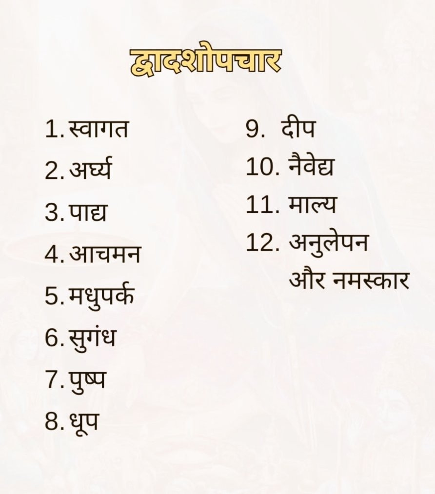рджреНрд╡рд╛рджрд╢реЛрдкрдЪрд╛рд░ (Dwadashopachar) тАУ 12 рдЙрдкрдЪрд╛рд░ (Offerings)